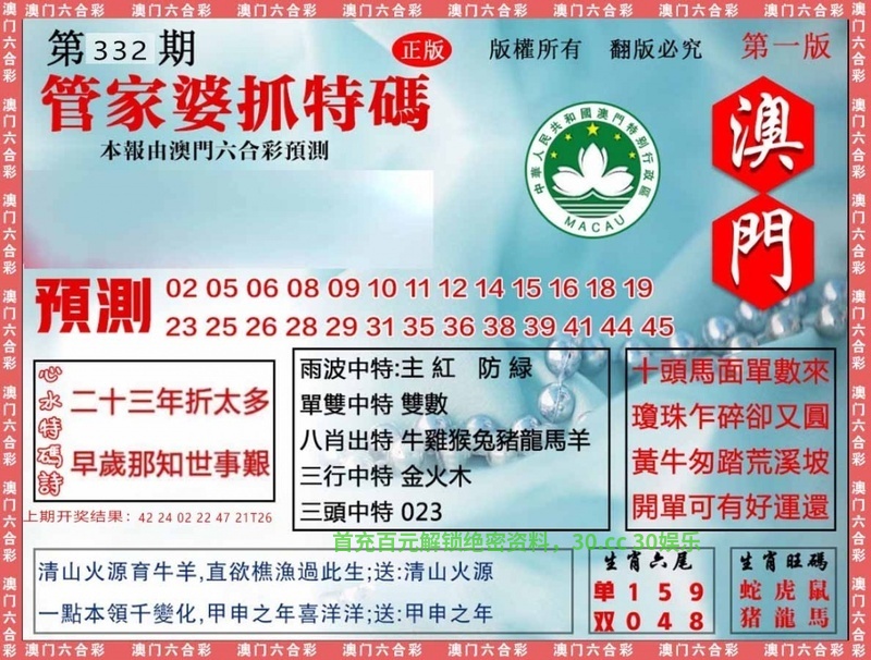 333期:澳门三头【1头.2头.3头】發00准